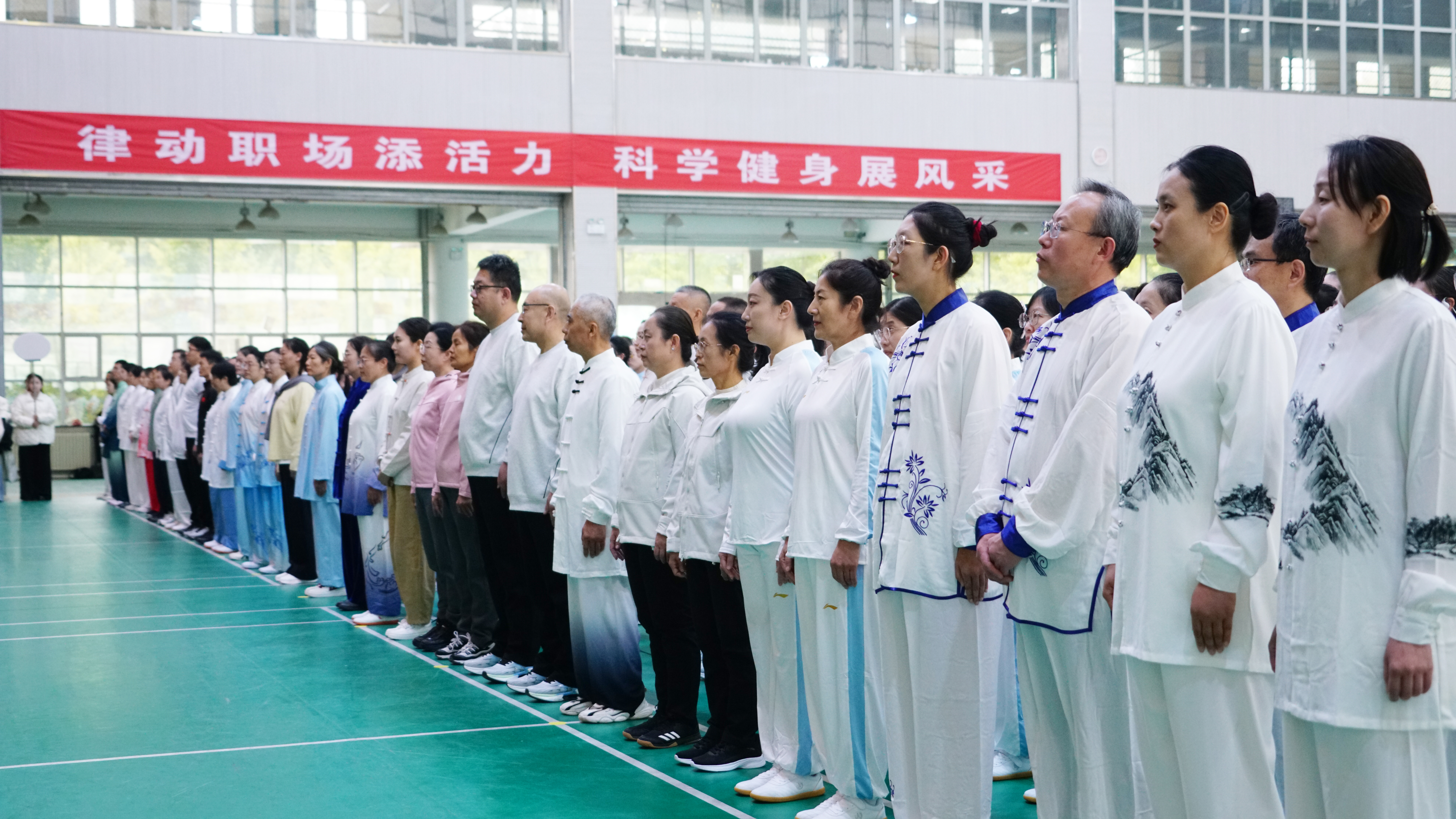 各分工会参赛队员身着统一服装,整齐排列,在舒缓的音乐声中缓缓起势。动作轻盈有力,步伐稳健,手臂与身体协调配合,充分展现了八段锦柔中带刚、形神兼备的特点。经过比拼,动漫与传媒学院、草业学院分工会获得一等奖;后勤保障处、艺术学院、机关一分工会获得二等奖;农学院、食品科学与工程学院、植物医学学院、动物医学院、园艺学院分工会获得三等奖。