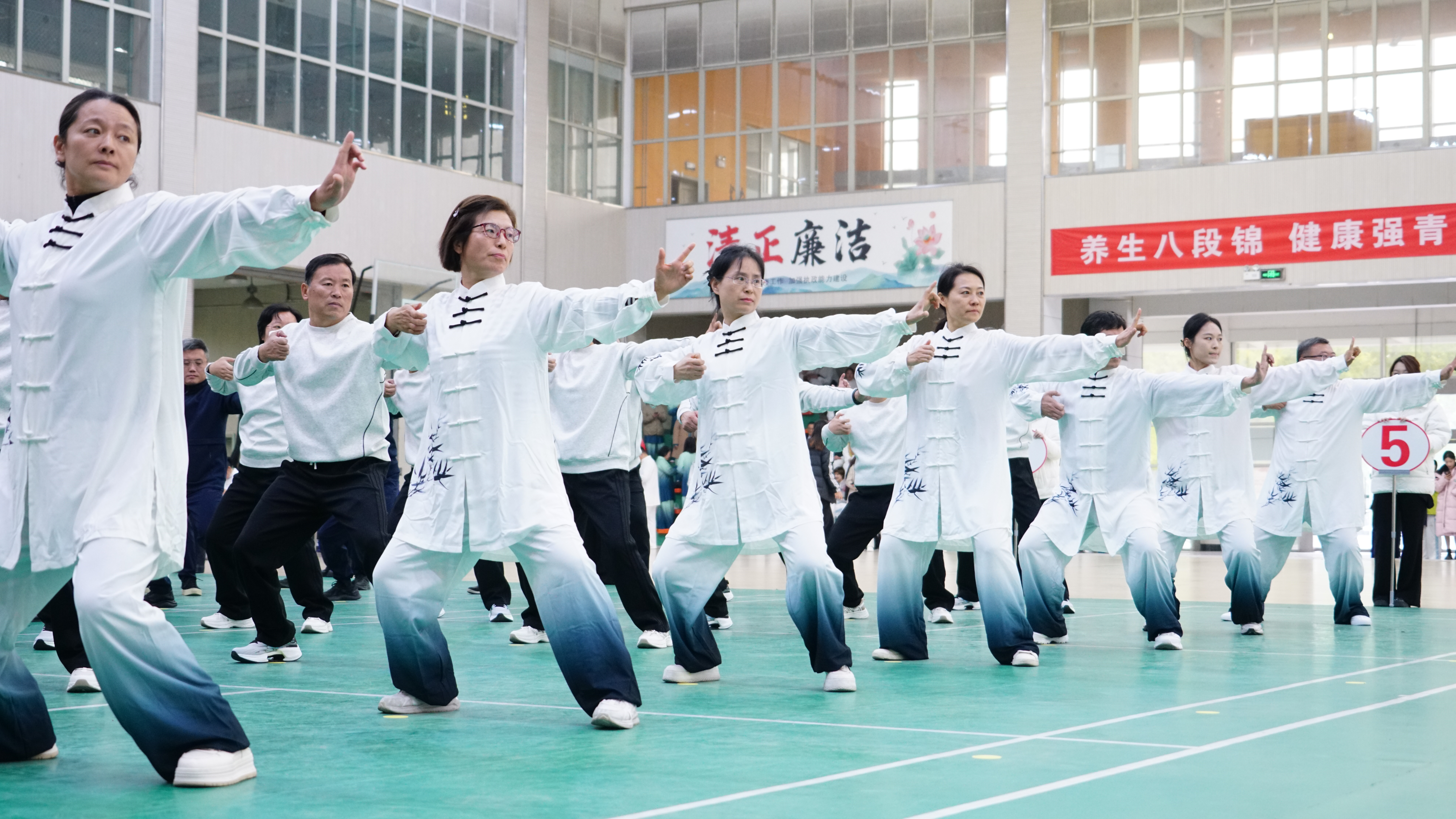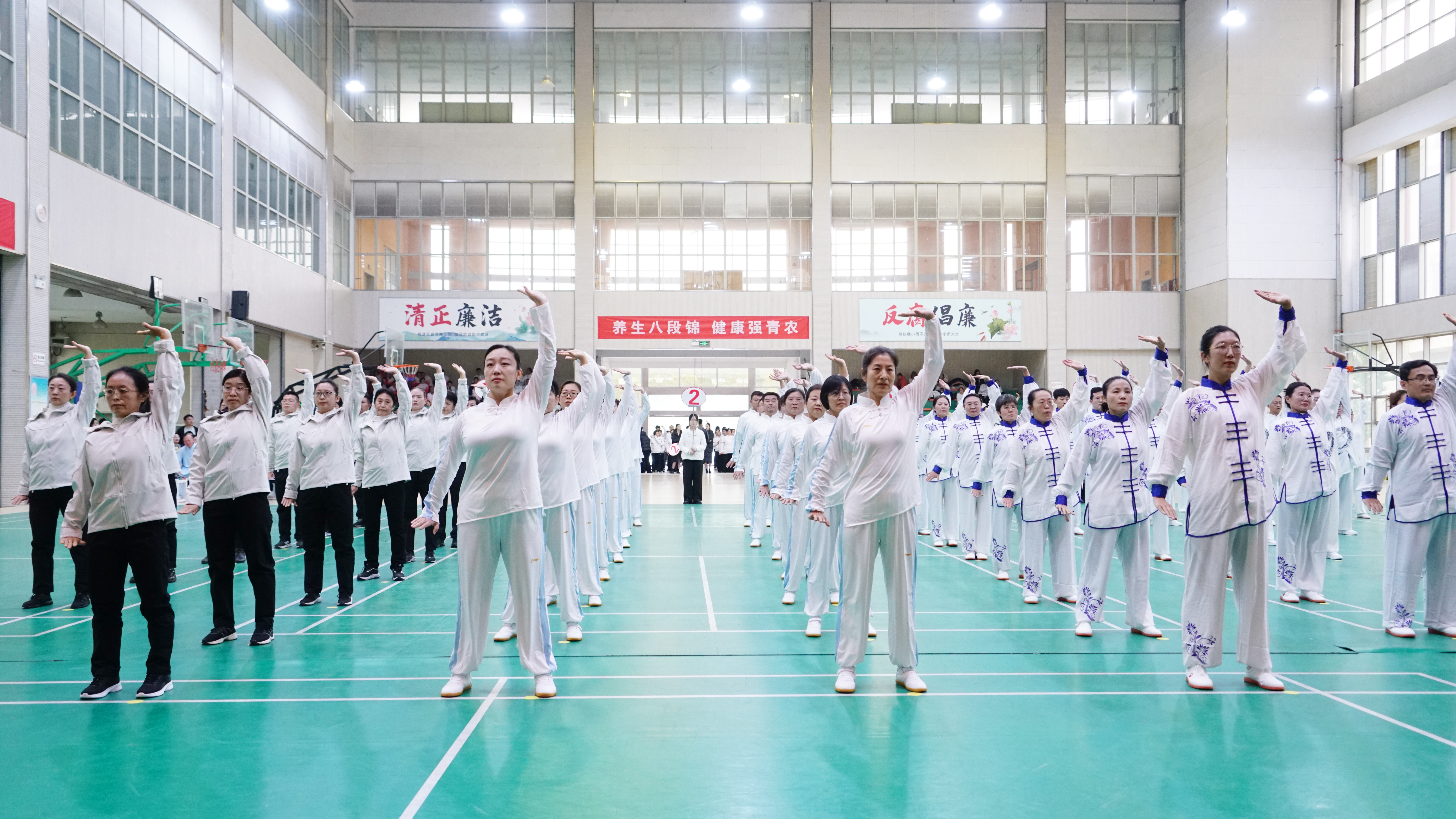 为开辟拓展教职工健康健身新途径,校工会组织开展了教职工八段锦推广普及和比赛活动,不仅弘扬了中华优秀传统文化中的养生理念,还进一步激发了教职工参与体育健身的热情,受到了广大教职工的欢迎。